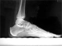 Posicion de gran uso en ortopedia y complementaria al perfil en decubito, es importante especificar si el apoyo es monopodalico, en patologia de sobreesfuerzo, puede ser de importancia el observar los puntos de contacto, en la medida en que los arcos plantares son respetados podremos descartar patologia mas que observarla, y no olvidar que es un enfoque complementario, algunos prefieren este enfoque para observar la medio tarsiana y su estado articular ,a veces tambien es necesario acompañar de un frente en apoyo para complementar la observacion. Dr.Aramayo