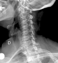 Paciente de pie o sentado, con la cabeza en posición neutra. El haz de rayos es dirigido horizontalmente al centro de la vértebra C4 (a nivel del borde inferior de la mandibula). Si el paciente está en decubito, el cassette se ubica lateral al cuello, con el haz de rayos dirigido horizontalmente 2,5 a 3 cm bajo la apofisis mastoides