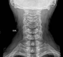 Columna Cervical AP: Con el paciente de pie o en decúbito, el haz de rayos se dirige a la altura de C4 (manzana de Adan), angulado 15 o a 20 o hacia cefálico